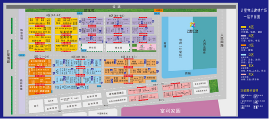 计星建材城次要分为两层,邻接兴和购物广场、高山建材市场、计星陶瓷城、计星家私城等大型专业批发市场,巴德士艺术漆等